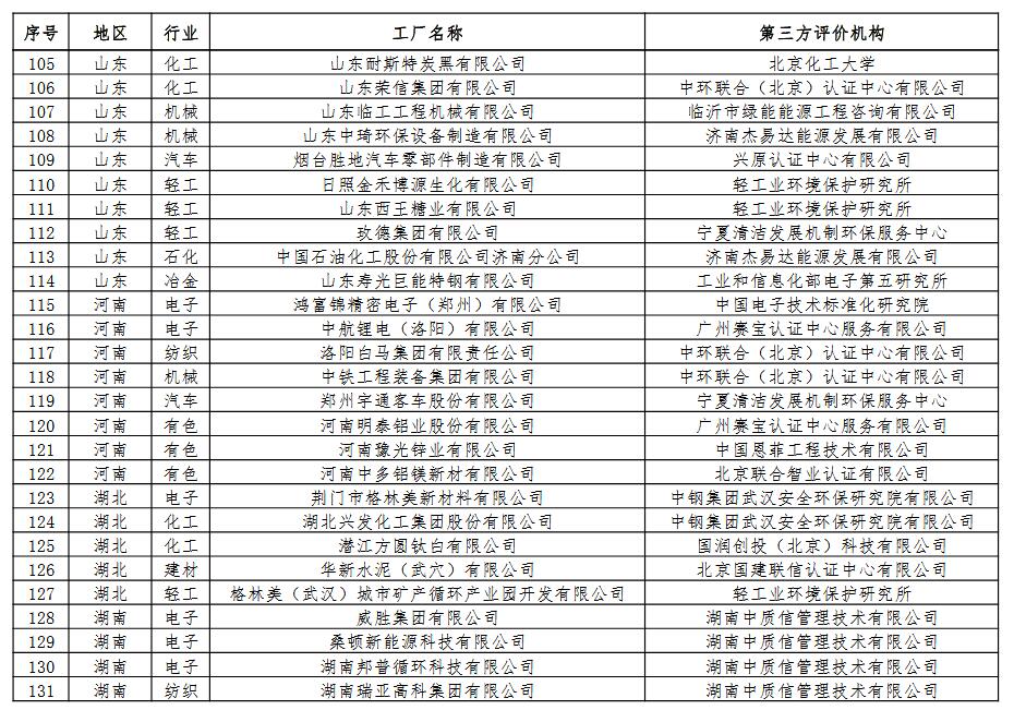 为贯彻落实《中国制造2025》,深入实施绿色制造工程,加快构建绿色制造体系,发挥绿色制造先进典型的示范带动作用,按照《工业和信息化部办公厅关于开展绿色制造体系建设的通知》(工信厅节函〔2016〕586号,以下简称《通知》)要求,我部组织开展了第二批绿色制造名单推荐工作。经申报单位自评价、第三方评价机构现场评价、省级工业和信息化主管部门评估确认以及专家论证、公示等环节,确定了第二批绿色制造名单,其中绿色工厂208家、绿色设计产品53种、绿色园区22家、绿色供应链管理示范企业4家(详见附件1-4),现予以公布。有关要求通知如下: